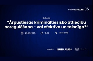 19. Septembris • 10:00 Aicinājums sekot diskusijai “Ārpustiesas krimināltiesisko attiecību noregulēšana – vai efektīva un taisnīga?”