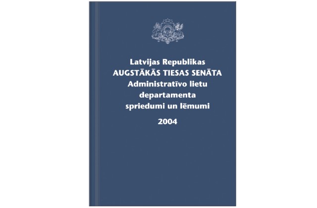 Grāmatas Avots: Tiesu namu aģentūra, 2005 Latvijas Republikas Augstākās tiesas Senāta Administratīvo lietu departamenta spriedumi un lēmumi 2004