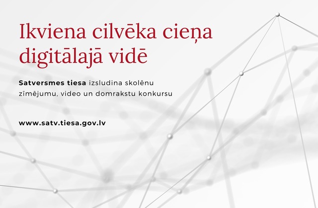 Satversmes tiesa aicina pedagogus pieteikt vispārējās un speciālās izglītības iestāžu 6. klašu skolēnus zīmējumu konkursam, 9. klašu skolēnus – video konkursam, 12. klašu skolēnus – domrakstu konkursam. Šā gada skolēnu konkursa temats – Ikviena cilvēka cieņa digitālajā vidē.